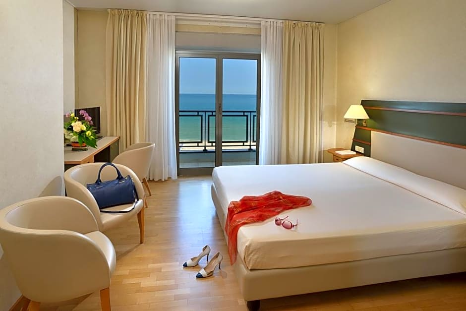 The Spirit for Two - Front Sea View is 312 square feet and includes either 2 single beds 80-130 width or a double bed 131-150 width plus balcony, terrace, satellite tv , hairdryer, and safe and is Wheelchair-accessible.